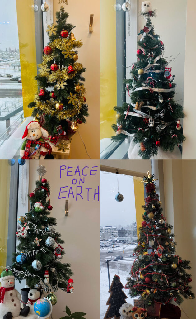 Our office now features four distinct, beautifully decorated trees, each reflecting the creativity and personality of our team. Some highlights include: